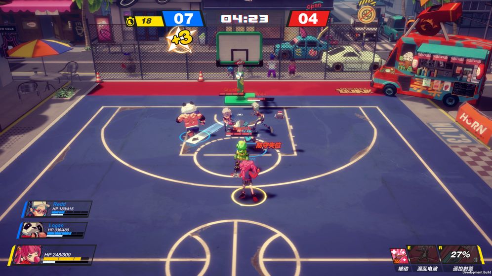 3、除了你的篮球技术以外,游戏也考验着你的格斗技术,每个角色都有不同的技能,开始斗殴吧。
