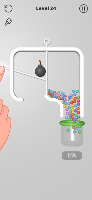 玩法原理很简单,重力将球拉向管道。但是别针挡住了路;