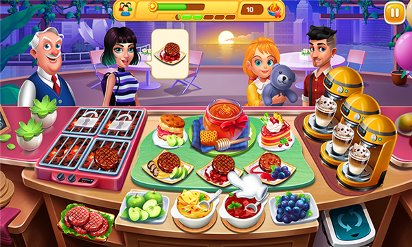 玩家在游戏中为超多的客人提供超多美味的食物,每一关都会有不同的客人需要不同的食物,在最短的时间内完成客人的要求才会有丰厚的奖励,超多的订单等待完成,快点下载游戏吧!