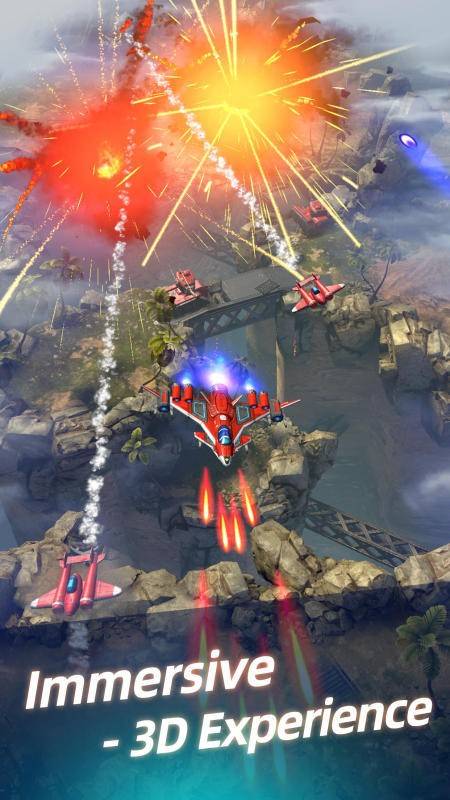 1、游戏为玩家打造的画面非常真实,驾驶不同的战机在关卡中自由的移动
