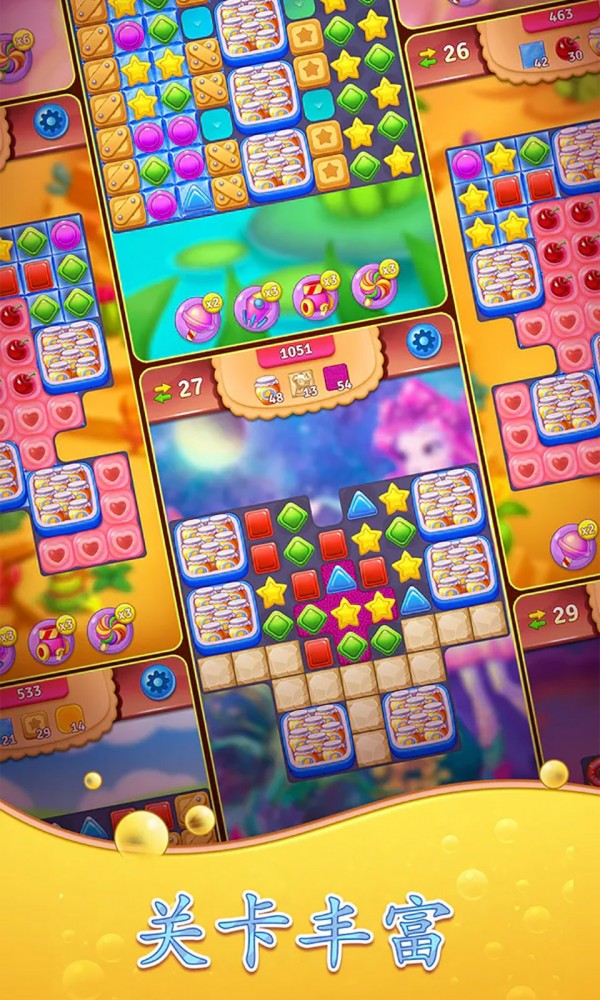 4、游戏消除的糖果数量越多道具的功能越好,使用这些道具可以大面积的消除。
