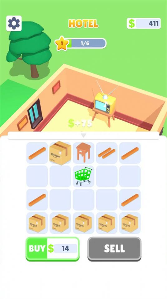1、游戏在合并的地方寻找相同的家具,这些家具不断的被自己移动完成合并。
