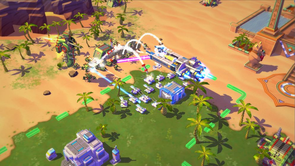 2、大量中立建筑导弹发射中心、空军基地、高科技工厂。地图上大量的功能性中立建筑物,军团之间相互争夺,占领这些战术要地,会让你的军团飞起来。