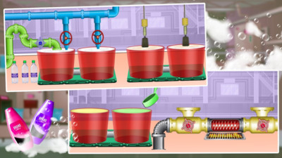 游戏中玩家能够根据不同的洗发水的配方来生产洗发水,玩家需要不断的进入关卡中闯关,关卡有很多的原材料需要玩家收集,这些原料是制作不同洗发水的,快点下载游戏吧!