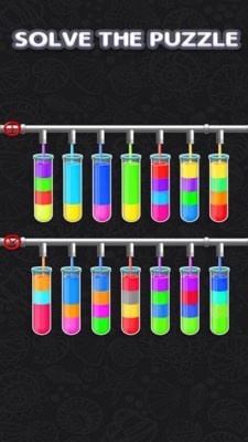 一款益智游戏,玩家在游戏的关卡中移动试管完成水的分类,试管中水的颜色都是不同的,玩家的任务就是移动试管将颜色相同的水分到同一个试管中完成关卡的挑战,快点下载游戏吧!