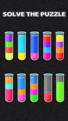 1、游戏的关卡会有一个初始的空试管,可以在试管中先倒入一些水完成分类的任务